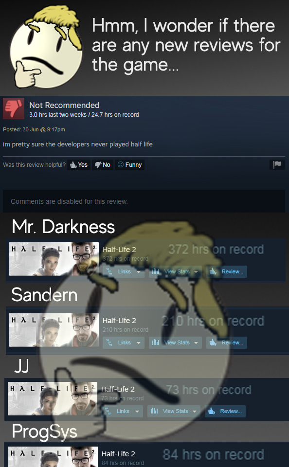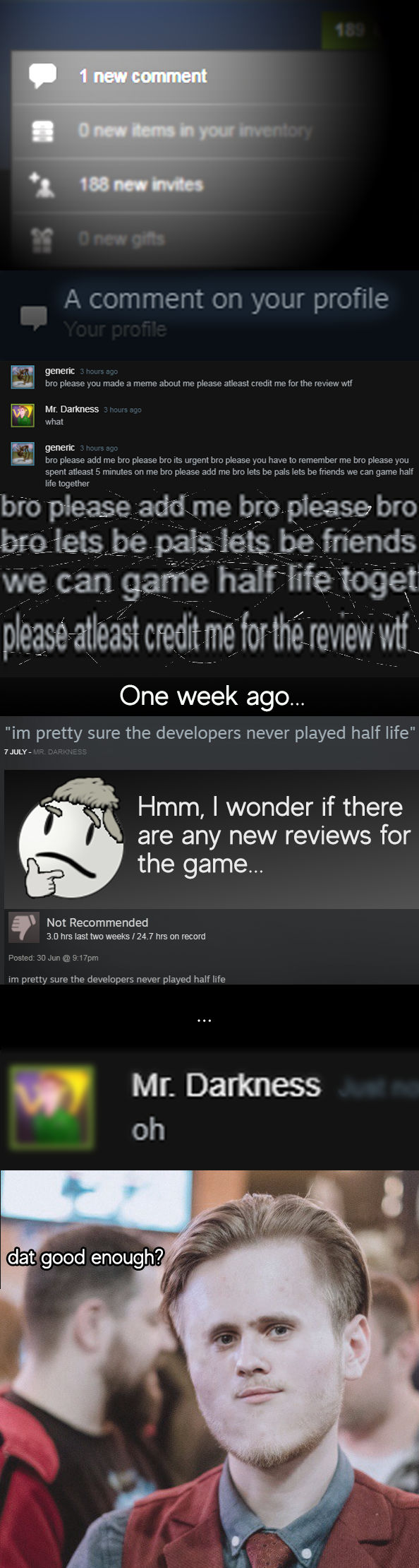 I decided to make&post memes genuinely for the community to enjoy the content, in case I can't or don't want to work on the game at some point. So I thought it would be good to maintain the activity and probably share some laughs here, which would seem totally fine to me. This doesn't ping anyone, and you only see news pop up. If they were to flood someone's news feed, sure, that would be an issue but, thankfully, this doesn't happen on Steam News. Some people still disagree, however. This is why I decided to make the following: