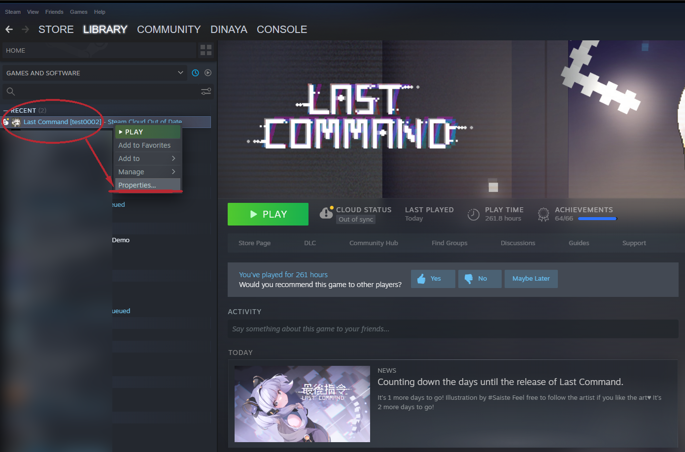 Q2:My controller is a DualShock 4 (or other brand), but it is showing XBOX360 in game. A:Right click on Last Command in your Library→Properties→Controller→Controller General Settings→select Disable Steam Input and re-launch the game.
