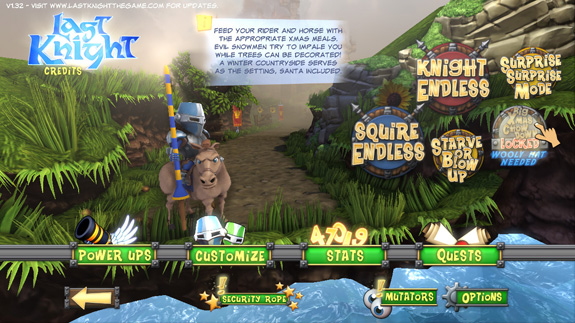 Tweaked for the Rogue Rider Adventure mode is the area length which is now upped from around 500 to around 750. The starting areas have been made harder while the isles and lava areas have been made easier. The toads and dragons you can come across in those areas appear now also less often in that mode. As requested the score counting for a passed area can now be skipped almost instantly with pressing right mouse or B button.