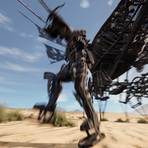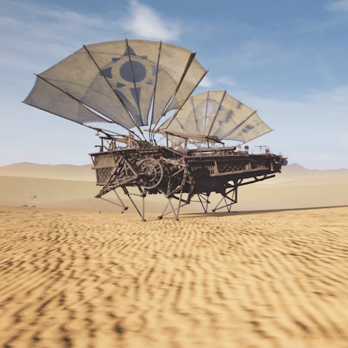 The Exoskeleton uses a complex system of pulleys and gears to maintain its integrity while moving and allows the nomad operating it to carry larger weights. Similar mechanisms are used in many other nomadic structures and tools. Even though the Exosuit's armor absorbs most of the damage dealt to the wearer, it won't be able to protect against environmental damage like fire or gases, while also suffering from poor explosion resistance. At the time of its invention on the Flotilla, the carrying mechanisms of the Exoskeleton are only suited for specially designed bolt-shooting weapons, but more tools and weapons are being tested by the Nomadic engineers.