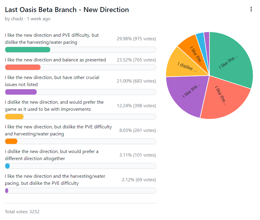 Overall, we were very happy to see that in general, the community enjoyed the new direction for Last Oasis. Doubling down on making the game world more interesting and challenging through PvE mechanics and encounters will improve the gameplay experience for both new and existing players - it seems 85% agree on that, and so do we.