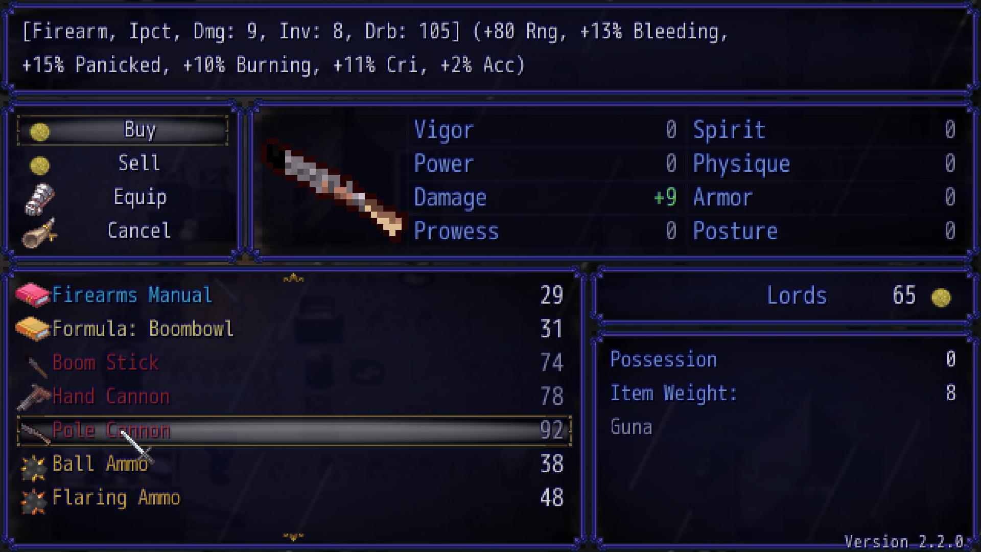 Changes & Additions: -Added Firearm Weapon Class -Added Ball Ammo Ammunition Class -Added Firearm Proficiency Talent -Added Firearm Manual (Trains Firearm Proficiency) -Added Boom Stick Firearm -Added Hand Cannon Firearm -Added Pole Cannon Firearm -Added Ball Ammo -Added Heavy Ammo -Added Flaring Ammo -Added Shoot Firearm Skill -Added Hip Fire Skill -Added Over Powder Skill -Added Boombowl throwable -Added Boombowl Schematic -Updated Samadar's Shop (When the DLC releases and you own it, this will show) -Added Handling Methods for Smoking Sands