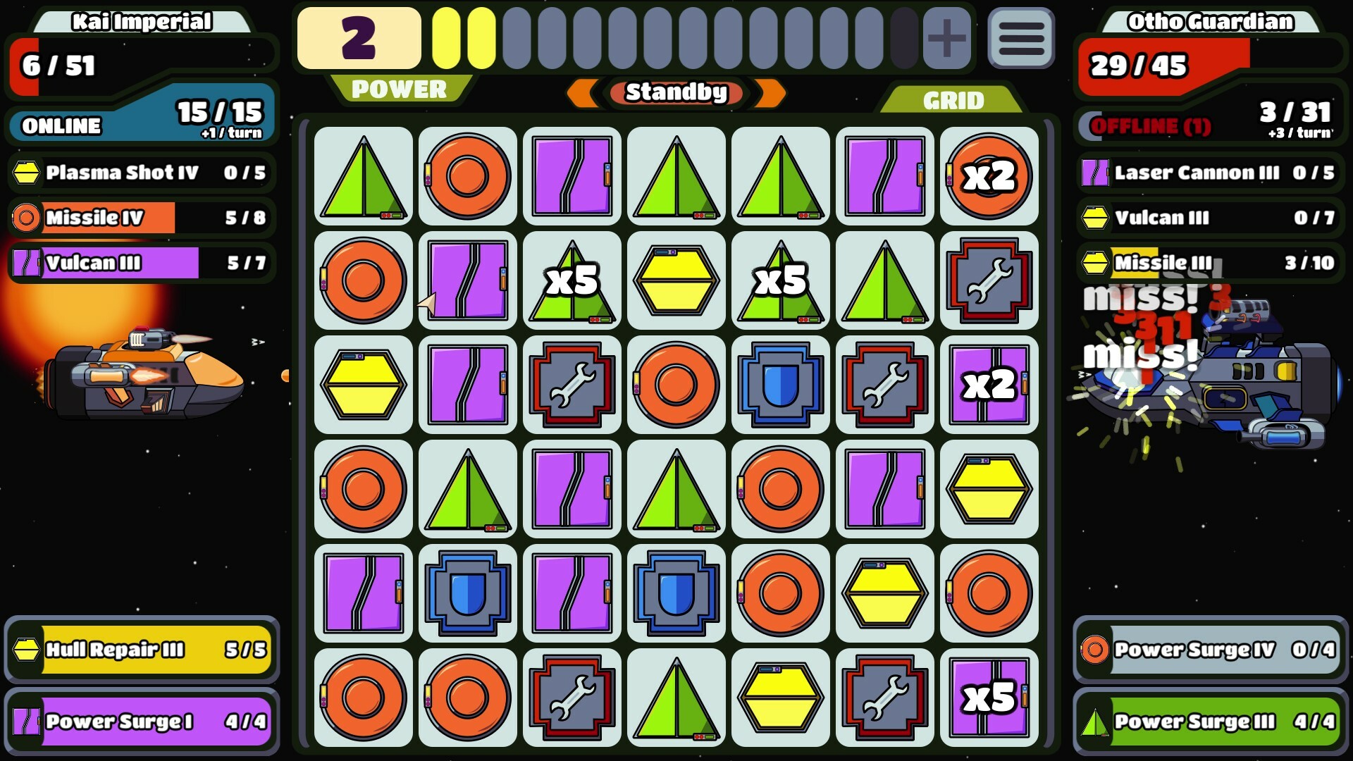 Enemy AI - The enemy ships have access to the same array of systems and movesets as the player. The enemy AI has been upgraded to take advantage of equipped tactical systems, and is recognising higher value matches. A further AI update is planned to improve the move routing, which should allow for some fun and challenging match ups.