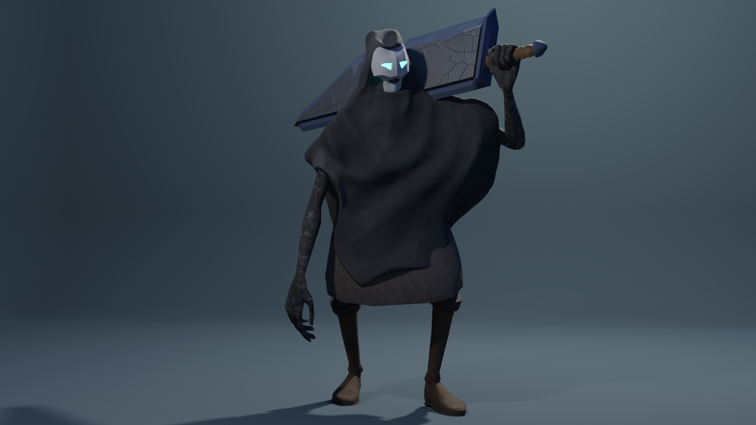 Another completed theme is now Ryan's soul, which is his teacher in a separate world throughout the game. In the background you can see a rendering of him. He is tall and mysterious. By the way, this is the first character I've rigged with Auto-Rig Pro. I finally have a better basis for the animation than with Riggify, which I used before.