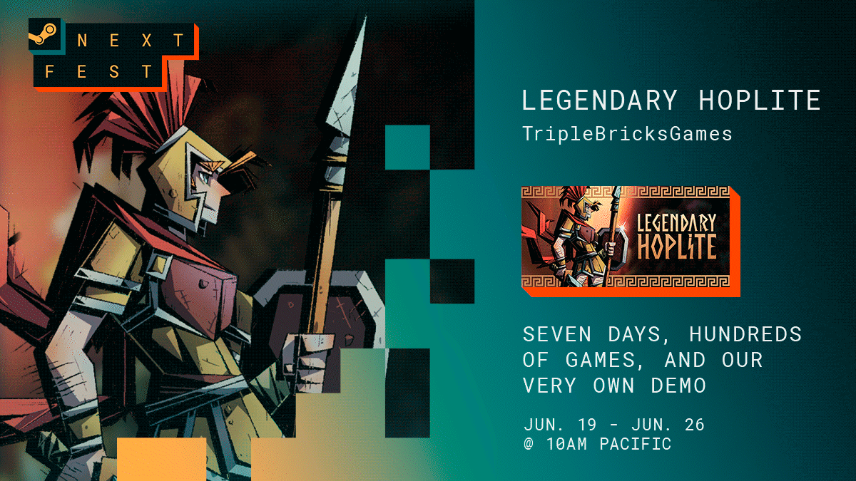 In honor of Steam Next Fest, we proudly present Legendary Hoplite, a game of epic battles! Be a part of the first live stream on 20.06 at 8:30 AM PDT/5:30 pm CEST and witness the defence of Ithaca.