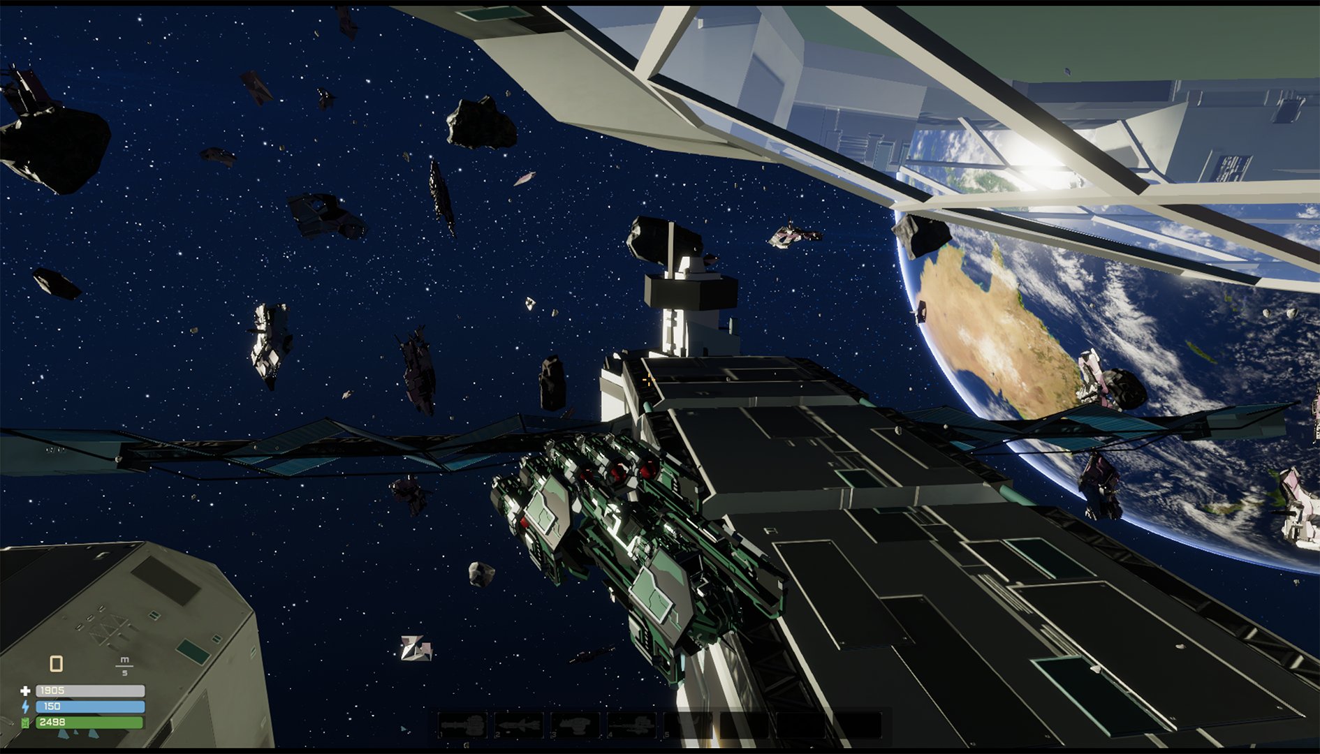 World generation and level design will be a gradual development. This update we added mega station into the earth's spawn location, to give Earth its own visual style. Dust clouds have been fixed and made a comeback.