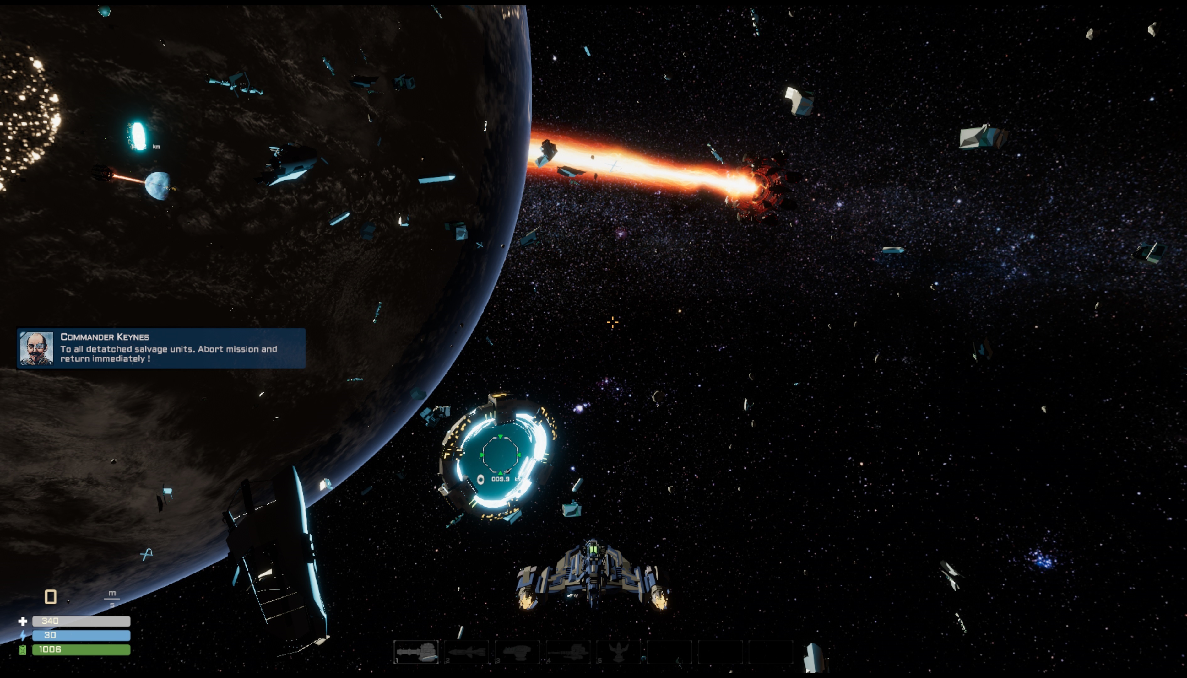 After three long months we are finally releasing a new update. We have added a first type of mining mechanic into the game. That is: salvaging of debris. You will find salvageable debris scattered all around the spawn location as well as some derelict ships in Mars sector. You can start mining right from the spawn, since default ship starts with salvage laser instead of minigun.