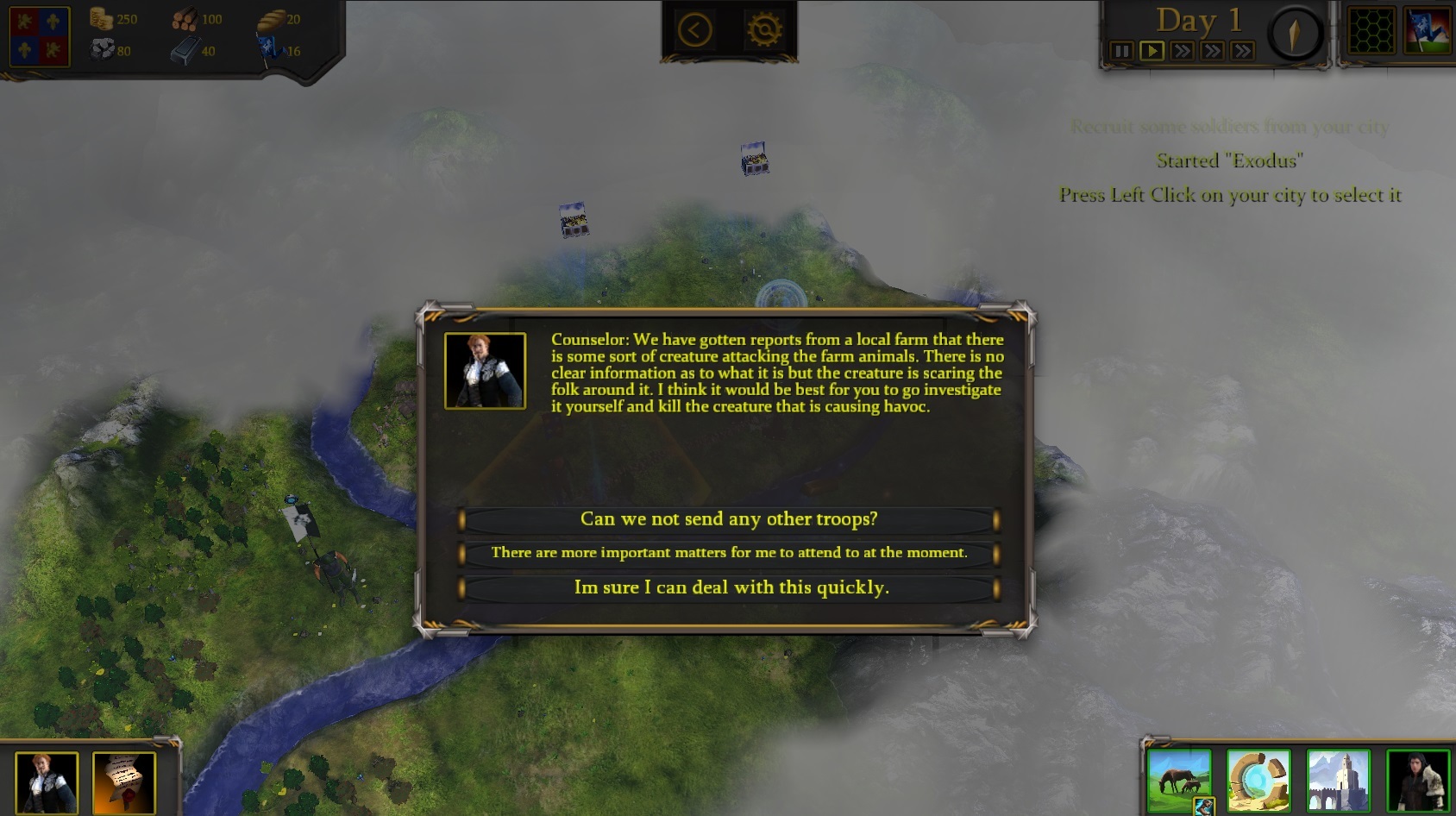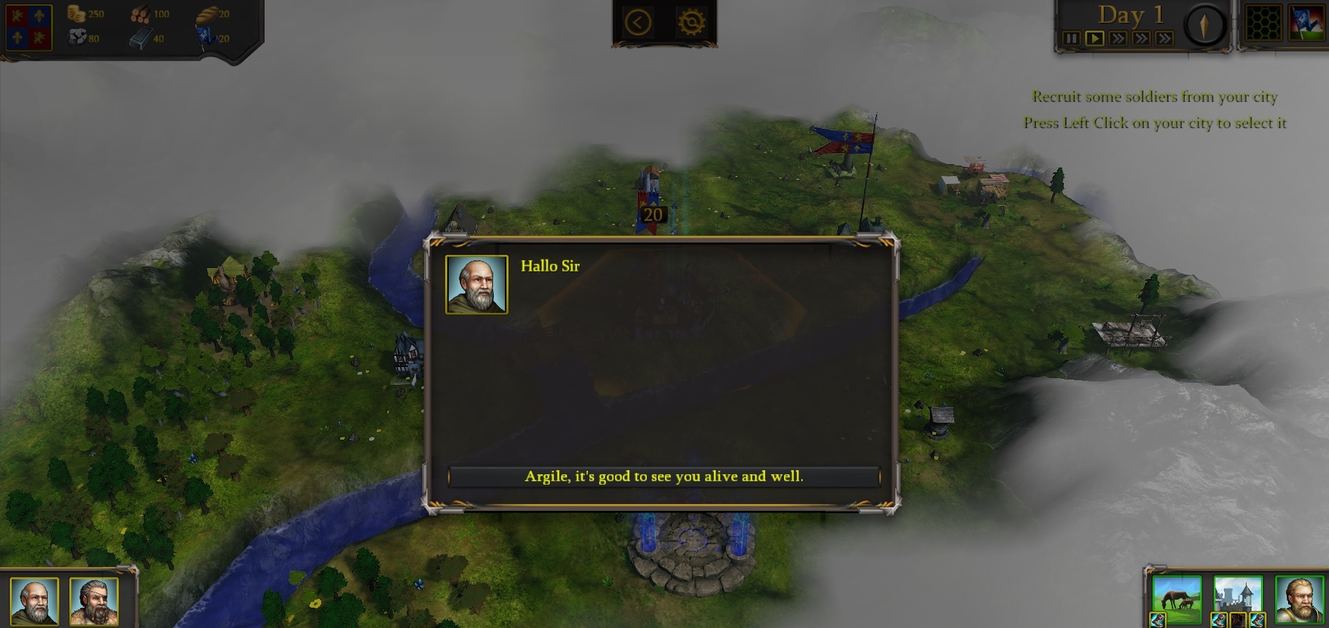 In the full game, you will be able to unlock new buildings and types of troops through research. Quests will also be much more important, as their outcome may influence your kingdom as a whole; and you will be able to assign them to a party of your heroes (or go in yourself for a greater reward… and a hardest challenge). We are in the implementation stage of the quests: the custom-made quest engine works since a few versions ago, but we’re improving it so it works with multiple locations and different heroes; the quests are all written and designed, the code is ready for the most part. In the main story, you will start with a small kingdom, making it grow until it becomes a major power in the world.