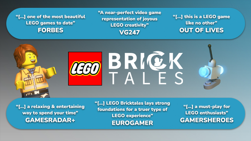 GodisaGeek.com / Score: 8 "LEGO Bricktales is a puzzler that takes you back to the early days of LEGO, when the freedom to build what you want took centre stage. There're plenty of opportunities to build, explore, and bask in the gentle humour that we could all do with a little more of."