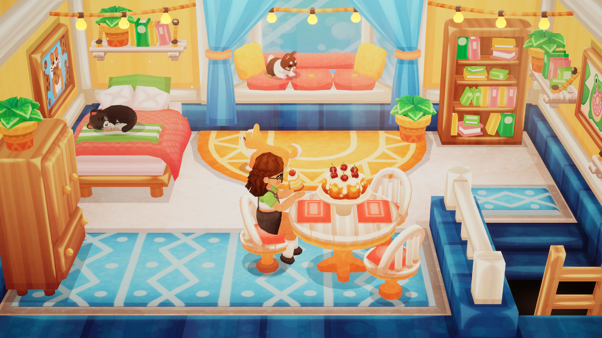 You’ll be able to purchase upgrades for the bedroom through a new skill tree, which includes a lot of cosmetic updates like curtains, paintings and plants. There are also three pets you can now adopt and keep in your room… And you might even find out some new secrets about Miss Bonbon in the library up there!