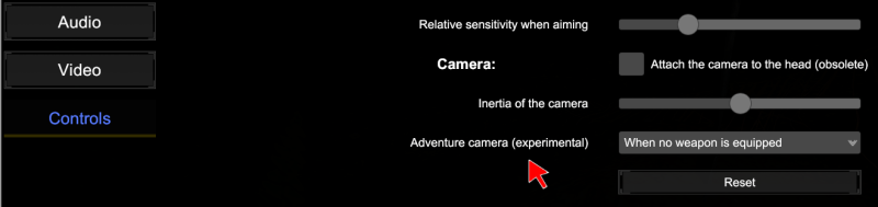 The new Adventure Camera mode is a third-person camera, slowly following the Player's character and roughly repeating the trajectory of his movement. You can control it with only one hand via keyboard or LStick controller, which does not exclude a possibility to quickly look around with mouse or RStick if you wish. In combat this camera is of little use, so when equipping a weapon will switch to the standard TPS camera regardless of the settings.