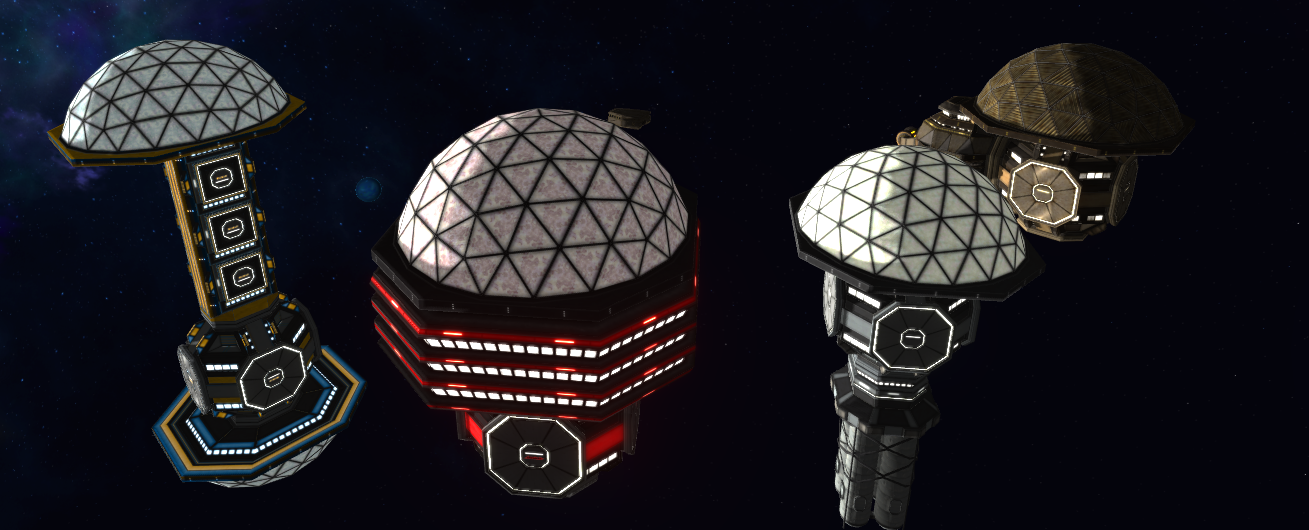 Having just one type of station hull becomes terribly boring quickly, so there are also multiple liveries with which stations spawn and some you can switch to yourself.