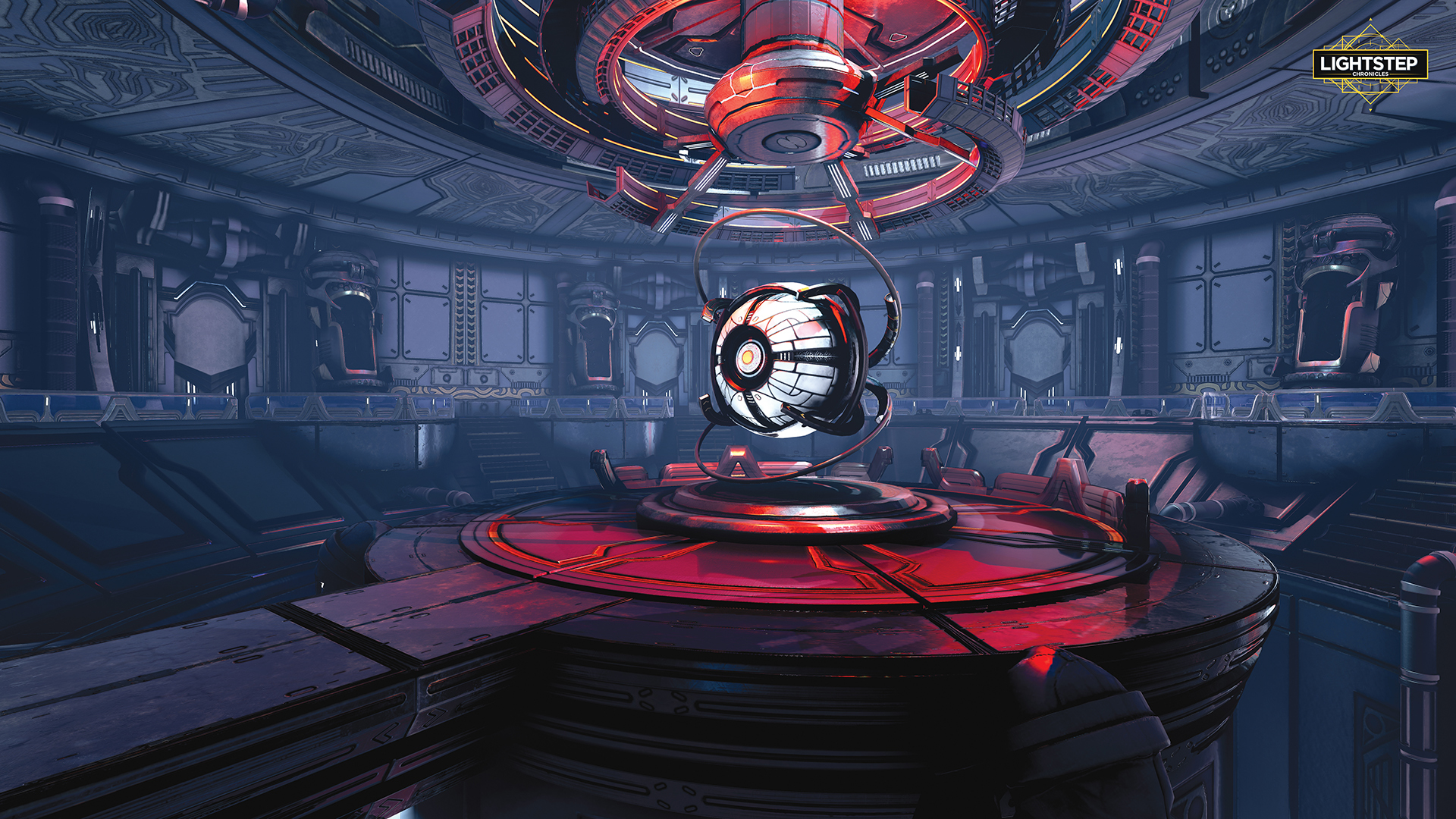 The wallpaper features Lightstep Chronicles key art - there's ALEPH, the emotionally unstable AI who you'll be chatting up throughout the game, hovering in the Amarok spaceship interior. The game art is futuristic sci-fi art deco, hope it shows here.