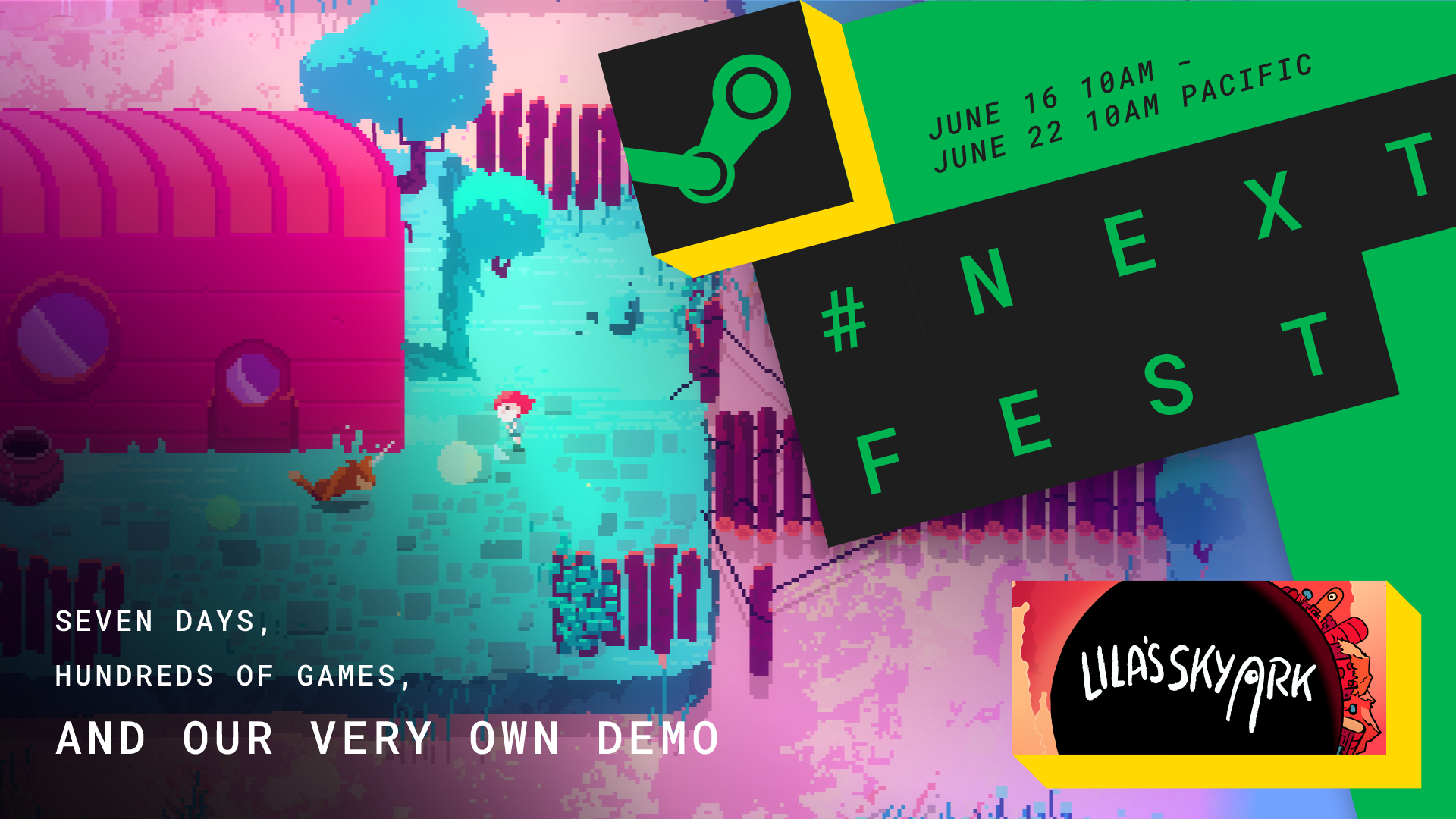 Steam is hosting its #NEXTFEST with lots of fresh demos, starting today. Over the last weeks we took a detour from our roadmap to splice together some preexisting content of Lila’s Sky Ark. We promise to go on the gamedev-journey together and having you dig into it as soon as possible is crucial.