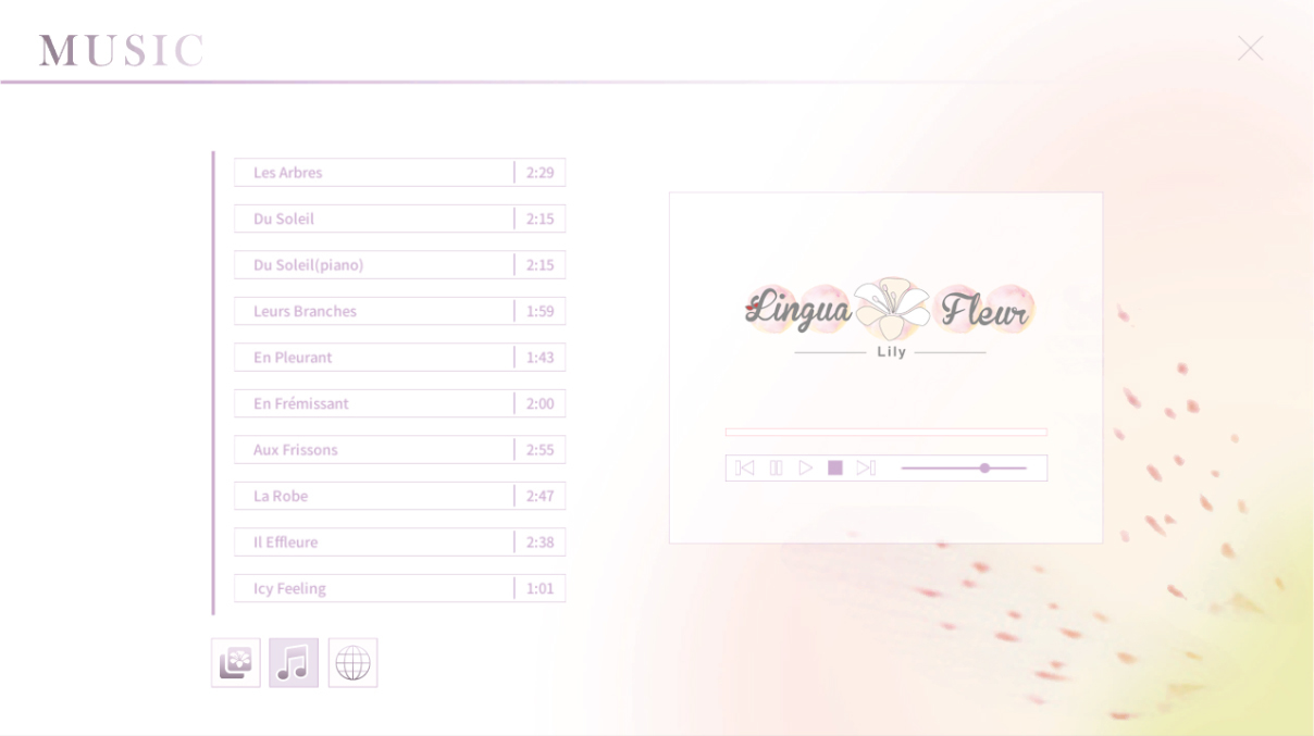 Although in the old version, the english sub title 'Lingua Fleur: Lily' (In fact, It's French lol) is at the bottom and with tiny font, but We're afraid of that players from West can't discern title of this work, so we made an English version!