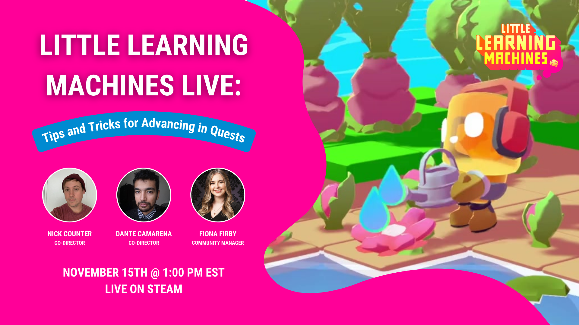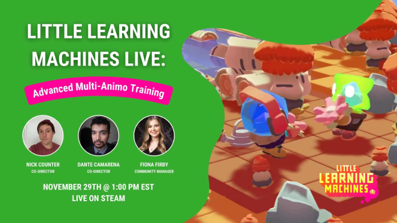 Join us on October 25th at 5 PM EST (2 PM PST) for an exciting live-streamed event on Steam: All About Little Learning Machines - now in Early Access! Meet the co-directors, Dante Camarena and Nick Counter, as they dive into the details behind Little Learning Machines.