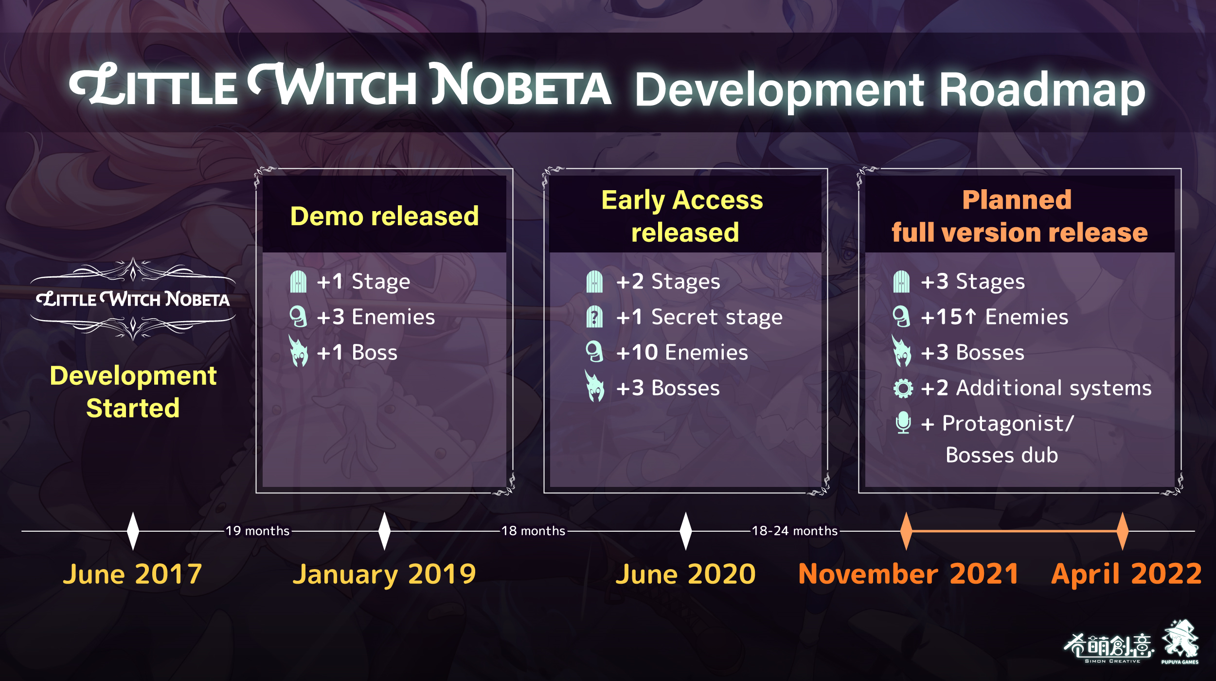 First of all, Little Witch Nobeta is a collaborated work developed by Pupuya Games and Simon Creative. Pupuya Games is mainly responsible for the development of the core game while Simon Creative assists in artwork, audio, script writing and localization.