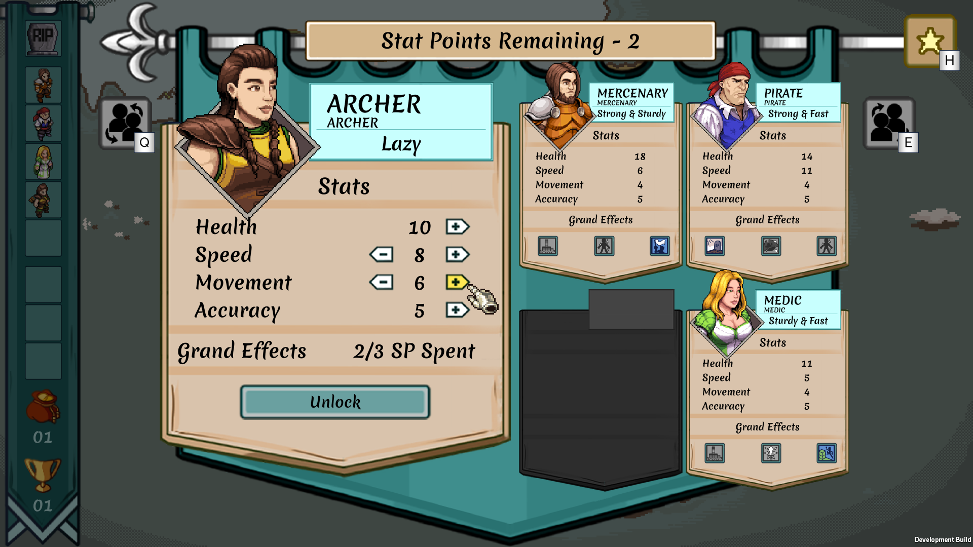 Grand Effects can influence gold, skills, movement, even if enemies are more likely to retreat! Each character has 3 Grand Effects to choose from, but you won't know which 3 until you invest those 3 SP. If a character is killed they lose all SP invested into them :(. But fear not, we are adding in items as well that can be used to gain SP and each Adventure will start with 1 SP available to be spent!