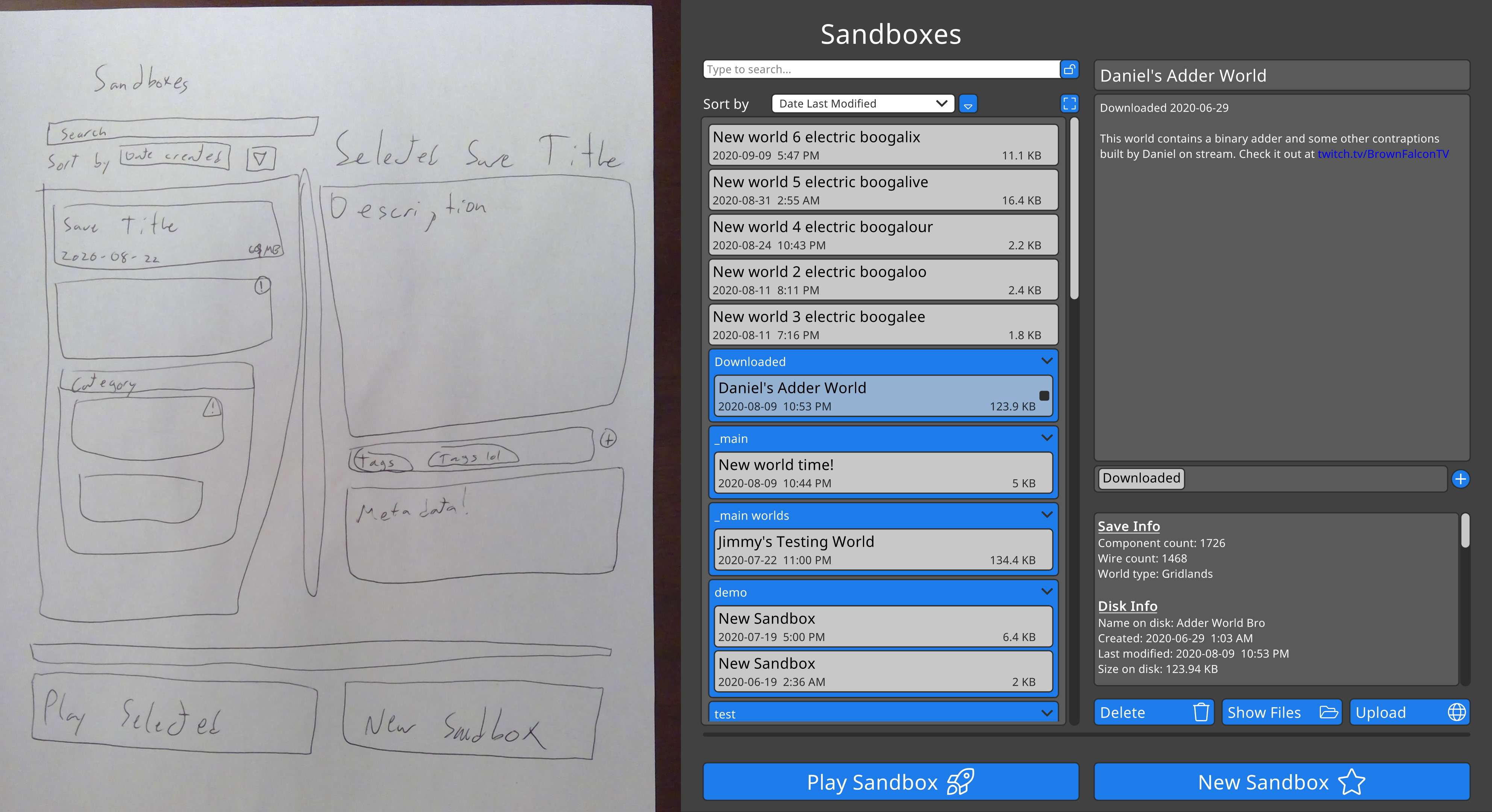 While implementing the reorderable lists, I noticed many small inconsistencies and annoyances with Logic World’s menus. Elements that were misaligned by a few pixels; scrollbars that had a tiny amount of slack where they should be fully expanded; state flows that required more mouse movement than I would like; buttons in inconvenient or ugly places. Because I’m a crazy perfectionist, I spent about a day going through my list of grievances and fixing many of the issues.