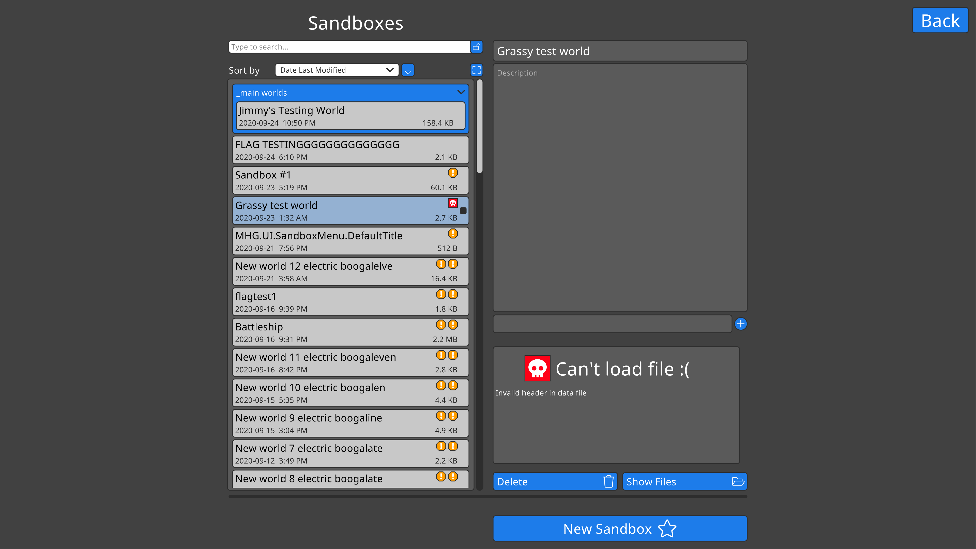 Fixed Sandbox List menu throwing an error and not generating if there is a sandbox present using an outdated save format version which has a valid save converter