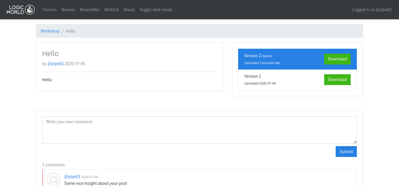 This week I’ve started working on the workshop part of the website. In the workshop you’ll be able to browse, comment and download the sandboxes, circuit boards and mods that people have uploaded.
