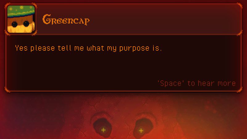 However the statues that have dialogue have all been rewritten and most of them have unique voices too! The Grand Librarian has a ton of stuff he will say to questions Greencap has about the world. Greencaps questions will also grow as you discover things and beat bosses, so far the only two dynamic new questions you get are for the Screw King boss and Queen Evil Eye, more to be added in the next upcoming update.