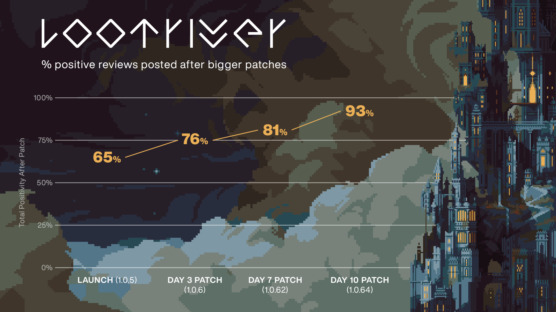 Our reviews are also looking more positive! After the last few patches, we’re seeing way more favorable reviews. If you like Loot River and haven't left a review yet, leaving one would be massively supportive for us.