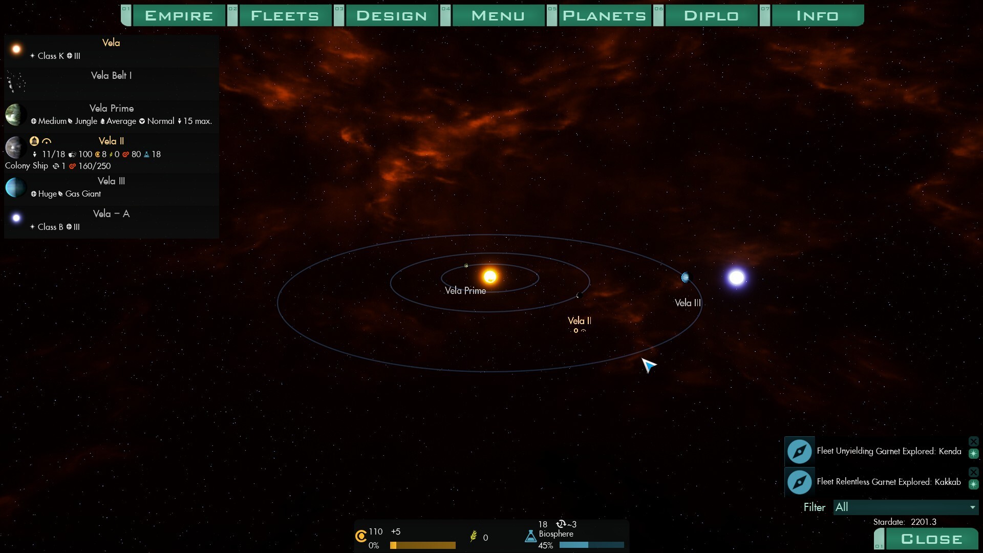To begin with for update 1,08, a requested quality of life improvement was adding planetary data to the galaxy view tooltips for stars. This provides a breakdown of planet size, climate, minerals, gravity, and default maximum population. The previous data about if an orbit can support a colony or outpost, or is occupied is also presented at the bottom of the tooltip.