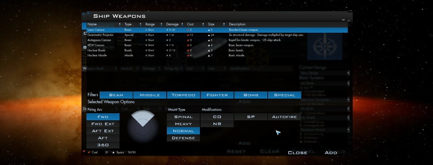 Known Issues: Ship Designer is continuing to be refactored. Not all weapons may correctly calculate or be added to a ship for player generated ship designs.