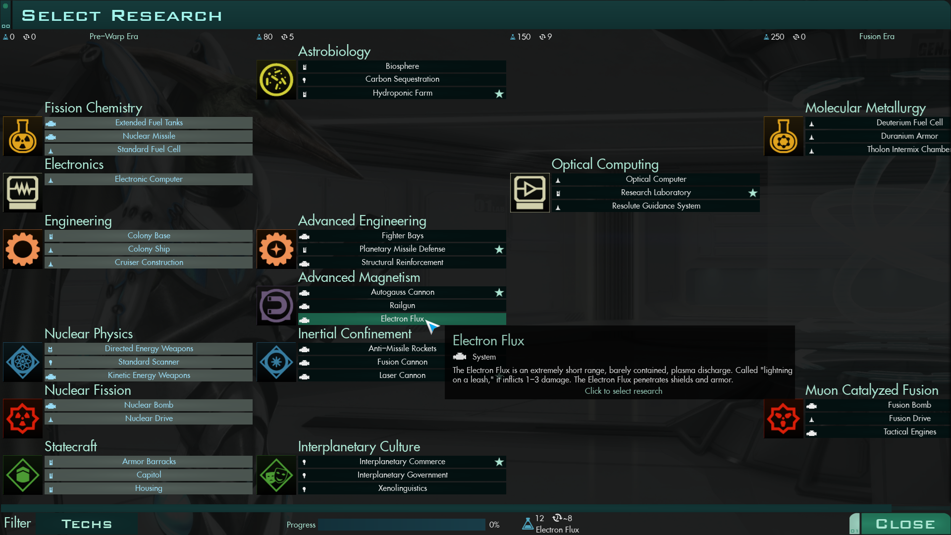 Image 3. The Electron Flux is early in the tech tree.