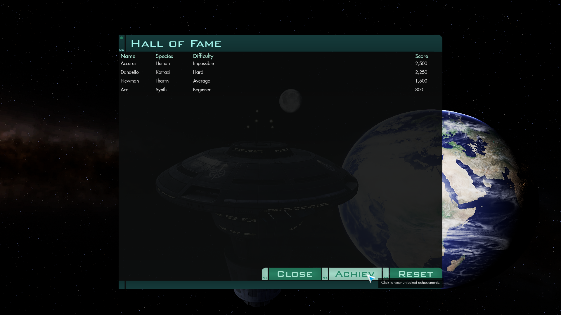 Achievements Menu