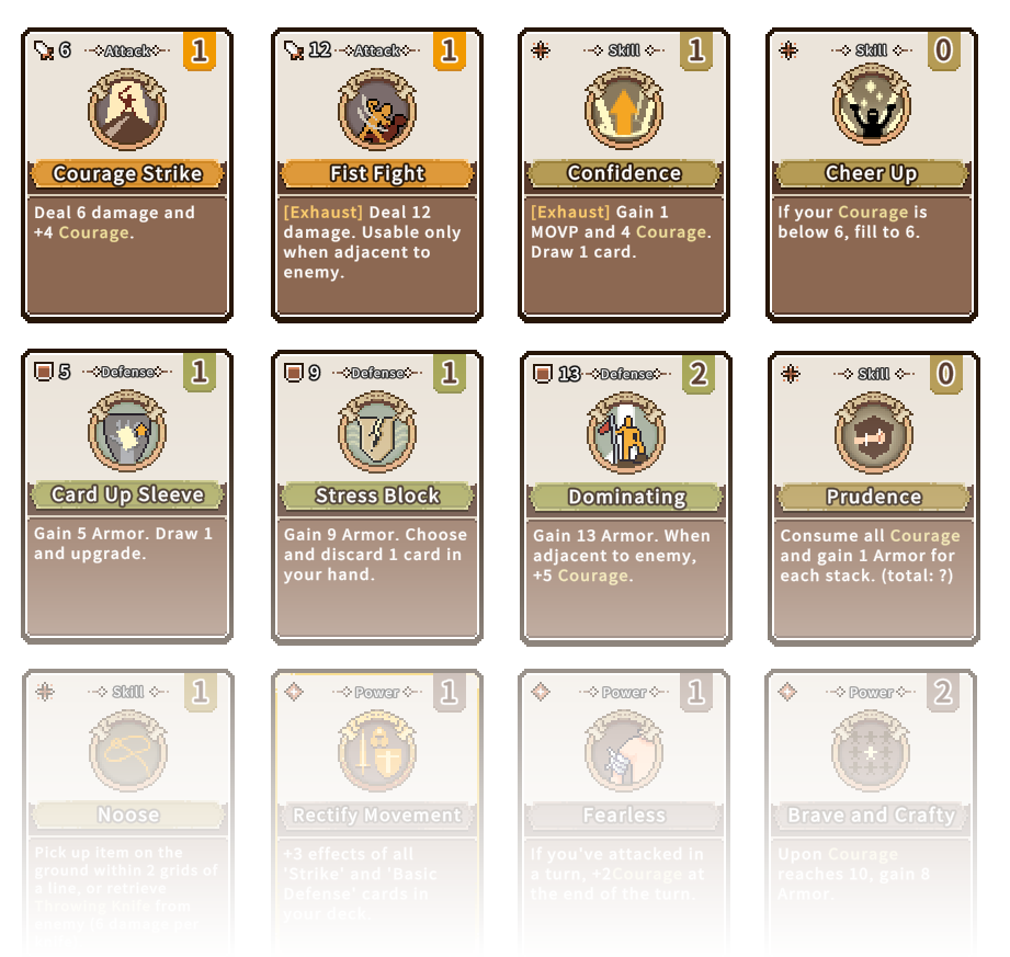 Card Courage Burst is no longer Void. Card Grapple +1 damage. Card Courage Strike +1 Courage. Card Fearless +1 Courage. Card Expropriation +1 damage. Upgraded Card Confidence +1 Courage. Upgraded Card Dominating -1 Armor. Card Prudence +1 effect and Exhaust. Card Cheer Up changed. Card Brave and Crafty changed.