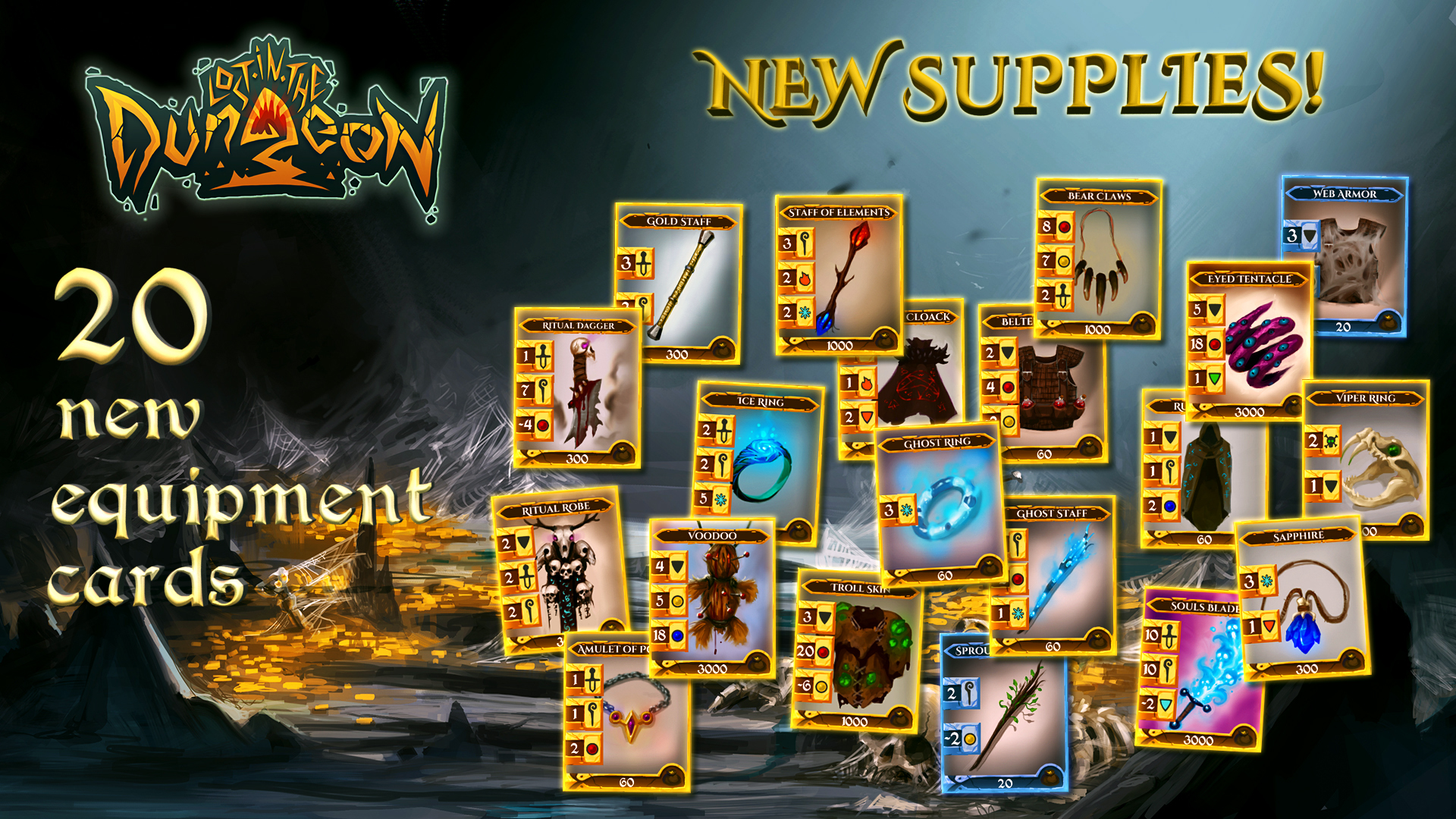 Greetings, adventurers! We're glad to announce that 20 new equipment cards have been added. You can loot new cards in every dungeon.