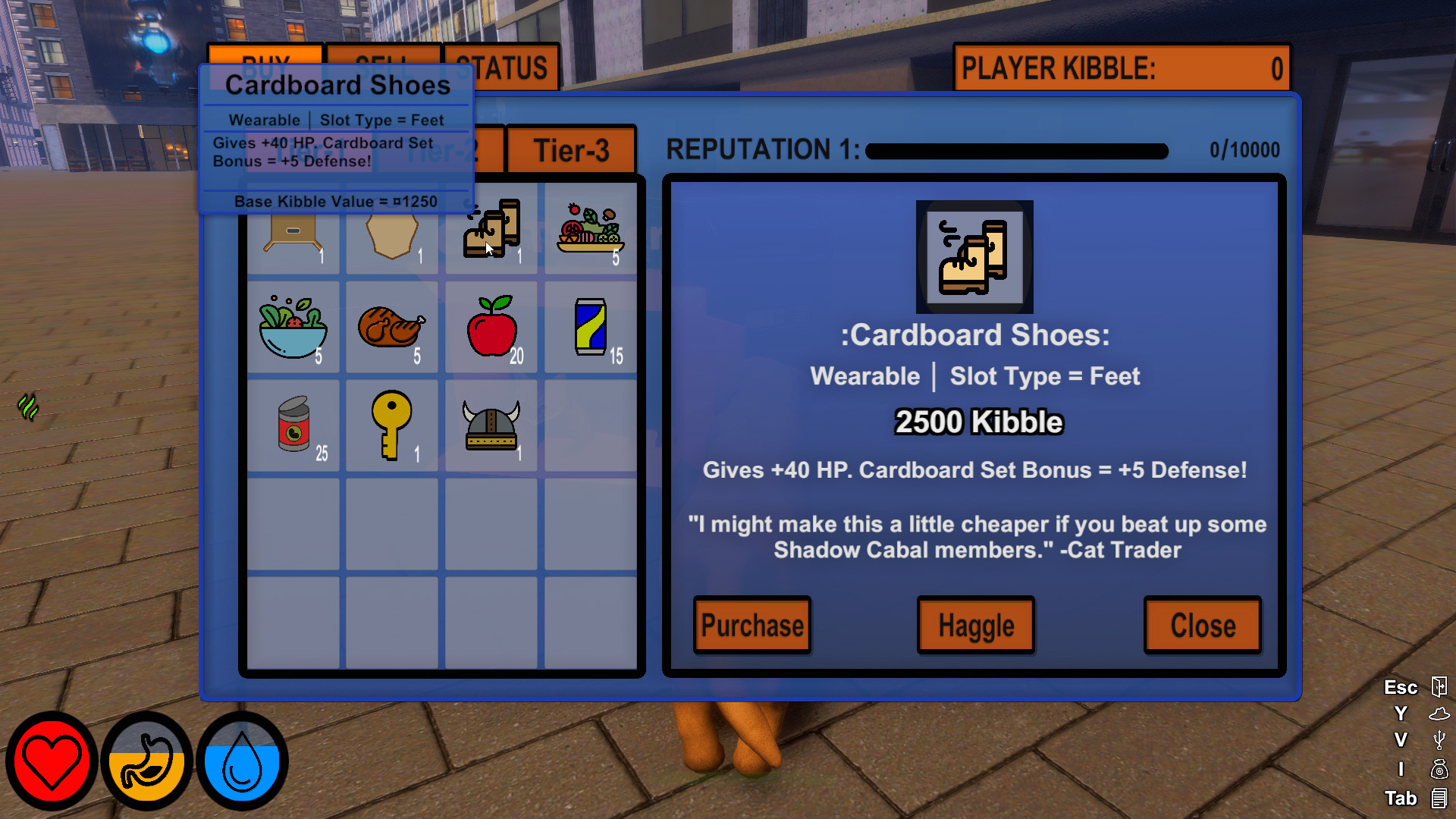 The focus of part 2 of this update specifically was to enhance the crafting and trading loop even more. The biggest addition to the game in this update was a special event that can happen after 30ish minutes within the Government District. This special event, which is a UFO arriving to drop some useful items in various locations, was added to give a little oomph to the trading loop. While the grind was already flowing and had multiple answers to acquiring kibble and manipulating prices, adding in some random elements to give you even more options to explore every once in a while felt like a beneficial addition. Now hunting for more Kibble has a dynamic element to it giving even more reason to know your way around the district.