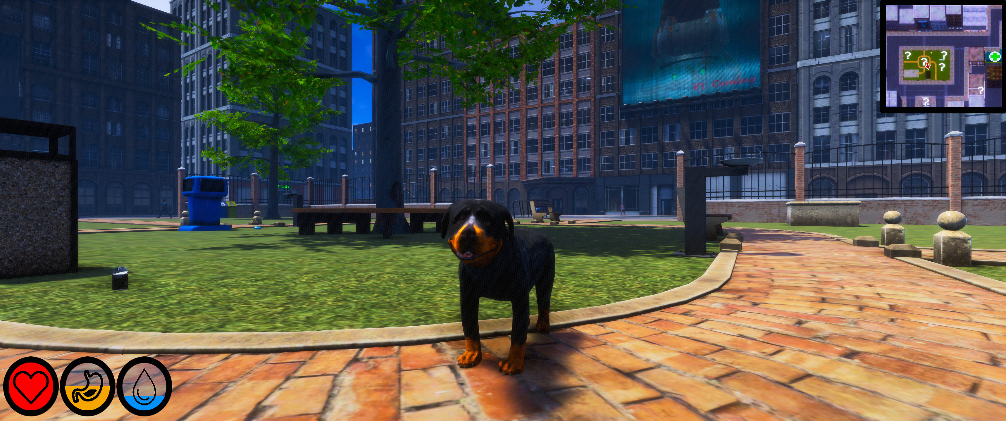 Longer term plans are focused on finishing some of our larger scale systems and adding new ones. We want to finish the RPG skills naturally, and would like to hear from all of you about what types of skills you might want to see. In addition, we want to add new storage options, advanced trading, crafting, and new NPC types both hostile and friendly to expand your human interaction options. We of course will also wrap up the main plotline and expand out the city. Beyond that the sky is the limit, with quite literarily new doggo super powers, more locations around the world, customization options, and much much more!