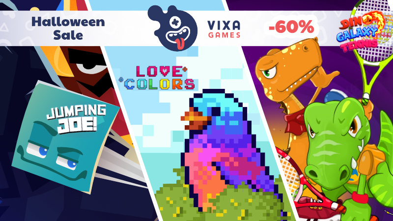 And if you have already achieved the mastery of jumping, why not give a try to our other games? Dino Galaxy Tennis, a fun space tennis game, and Love Colors, relaxing paint-by number pixel art are on 60% sale too!