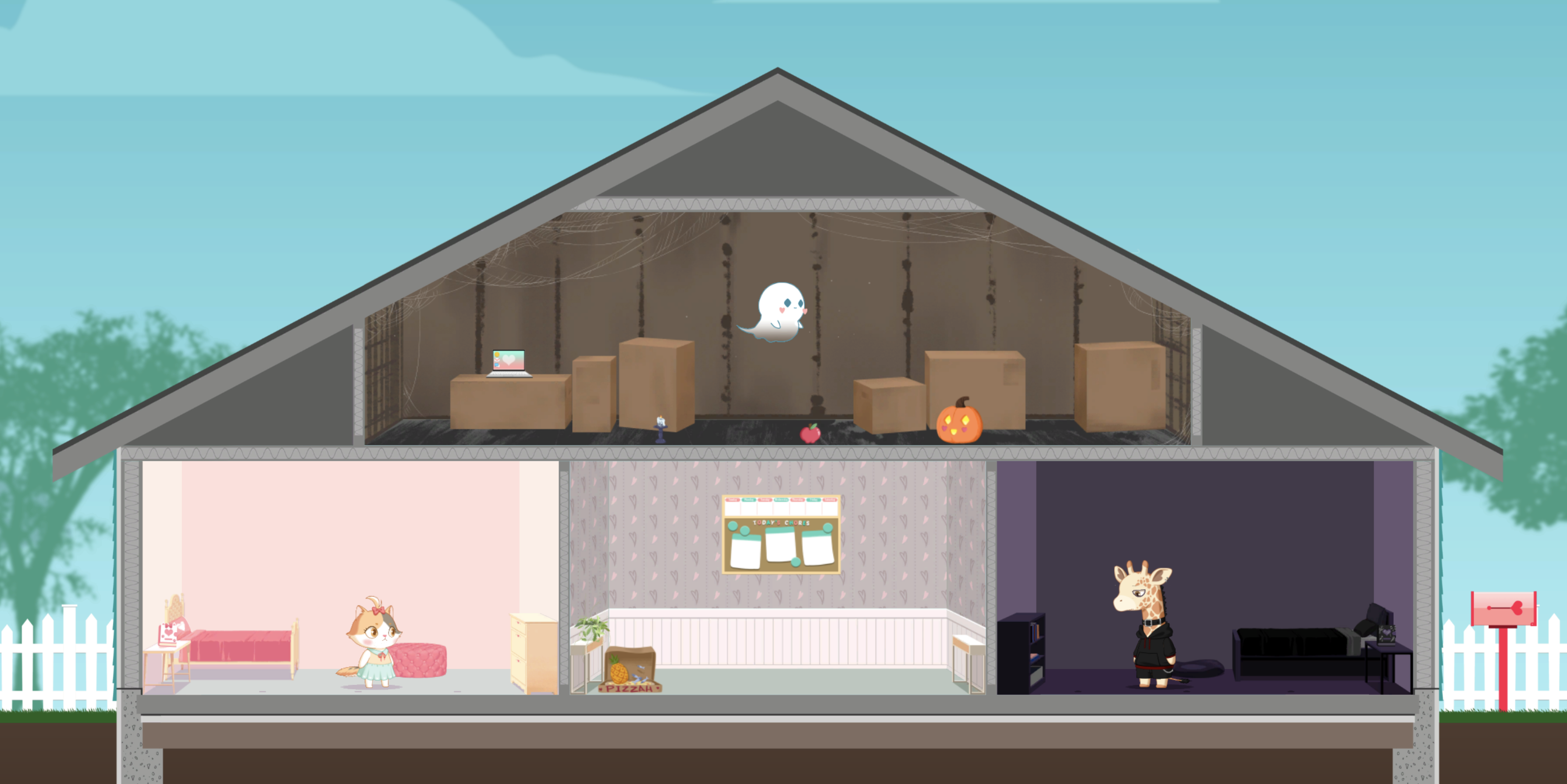 Fast forward to when the demo was publicly released - people were posting videos of Love, Ghostie and streaming it. We tuned into every stream we could possibly watch. We were so nervous and weren't sure how the demo would be received. Would people find it funny? Would they think it’s boring? What if they didn’t like the residents? So many anxious thoughts ran through our minds, but they all went away as soon as we saw people play through the demo. The genuine enjoyment and laughter that we saw eased all our anxieties. We started to get so excited knowing that people actually enjoyed what we had made.