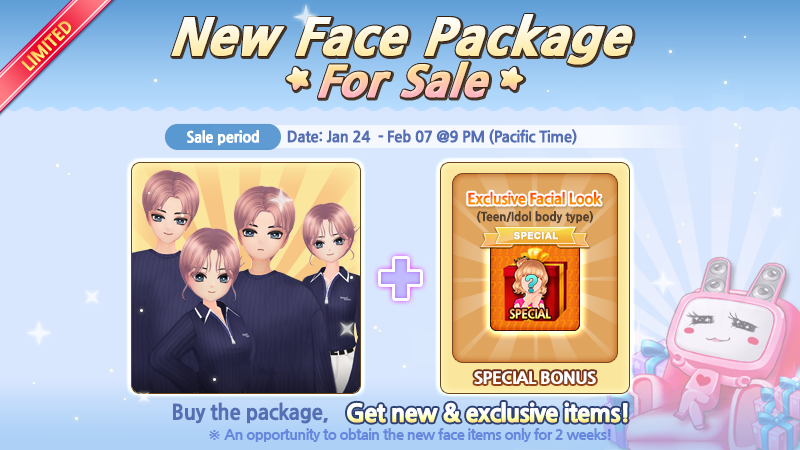 1. NEW FASHION ITEM - 15 items for the female teen body type - 15 items for the male teen body type - 4 items for the female idol body type - 4 items for the male idol body type