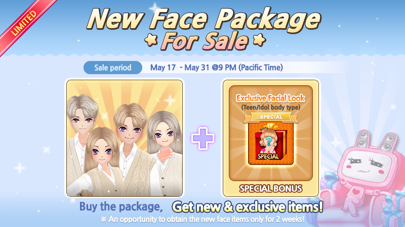 1. NEW FASHION ITEM - 15 items for the female teen body type - 16 items for the male teen body type - 3 items for the female kid body type - 3 items for the male kid body type - 8 items for the female idol body type - 8 items for the male idol body type