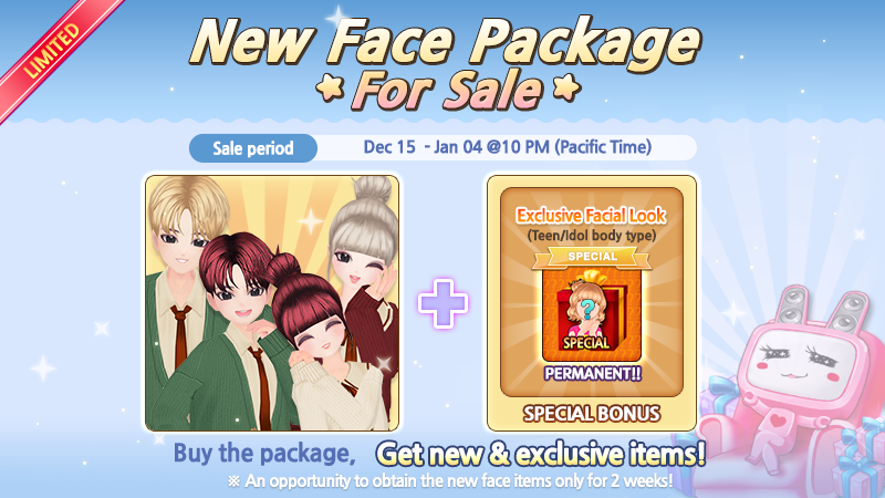 1. NEW FASHION ITEM - 16 items for the female teen body type - 18 items for the male teen body type - 5 items for the female kid body type - 5 items for the male kid body type - 8 items for the female idol body type - 6 tems for the male idol body type