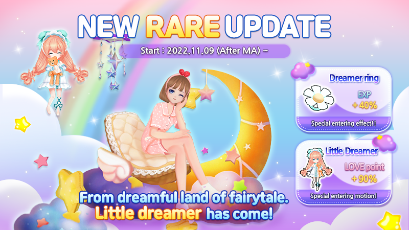 Summary of the rewards - Daily Reward: Discount Coupon, Love/Double Power, Mutual Emotes, Seed, Pot, Couple Pose, VIP Room - Special Reward: Rare items - Ranking Reward: Free Coupon*, Fairytale Whale Egg, Permanent Hair/Pants/Shoes Coupon *The free coupon can be exchanged for a permanent item.