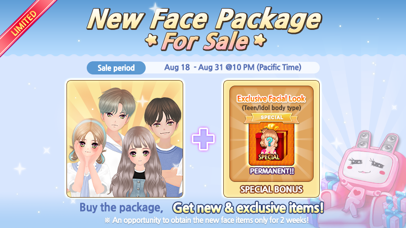 1. NEW FASHION ITEM - 21 items for the female teen body type - 21 items for the male teen body type - 9 items for the female kid body type - 9 items for the male kid body type - 14 items for the female idol body type - 13 items for the male idol body type
