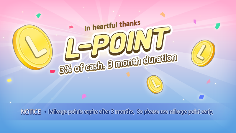 [HOW CAN I GET L-POINT?] Whenever you purchase, gift using cash, You will get certain percentage of L-Point.