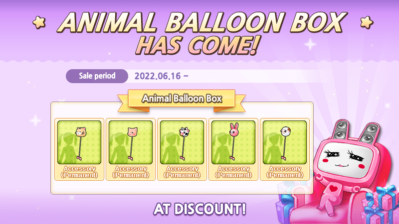 The gift box contains one of the following items: 50% / 30% Off Coupon, Hair / Top / Pants / Shoes Coupon (1-day), Double Power, EXP Bonus