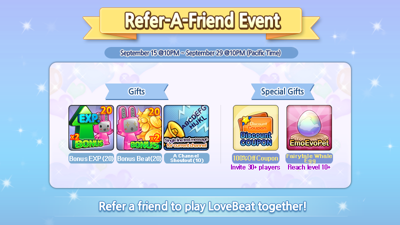 Invite your friend to play together and receive gifts! The event is live until September 29@10PM (Pacific Time).