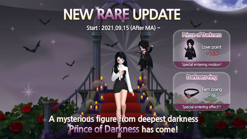 From deepest darkness, a mysterious figure appears. You will get new rare “Prince of Darkness” from September 15 (After MA)