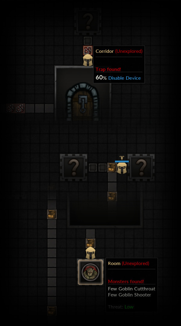 In the previous preview "Random Dungeon Generation", all of the rooms and adventure elements in dungeons can be seen initially for demonstration purposes. In the real adventure, the room structure and adventure elements of each dungeon are all unknown in the beginning. The player party needs to explore and reveal the whole dungeon.
