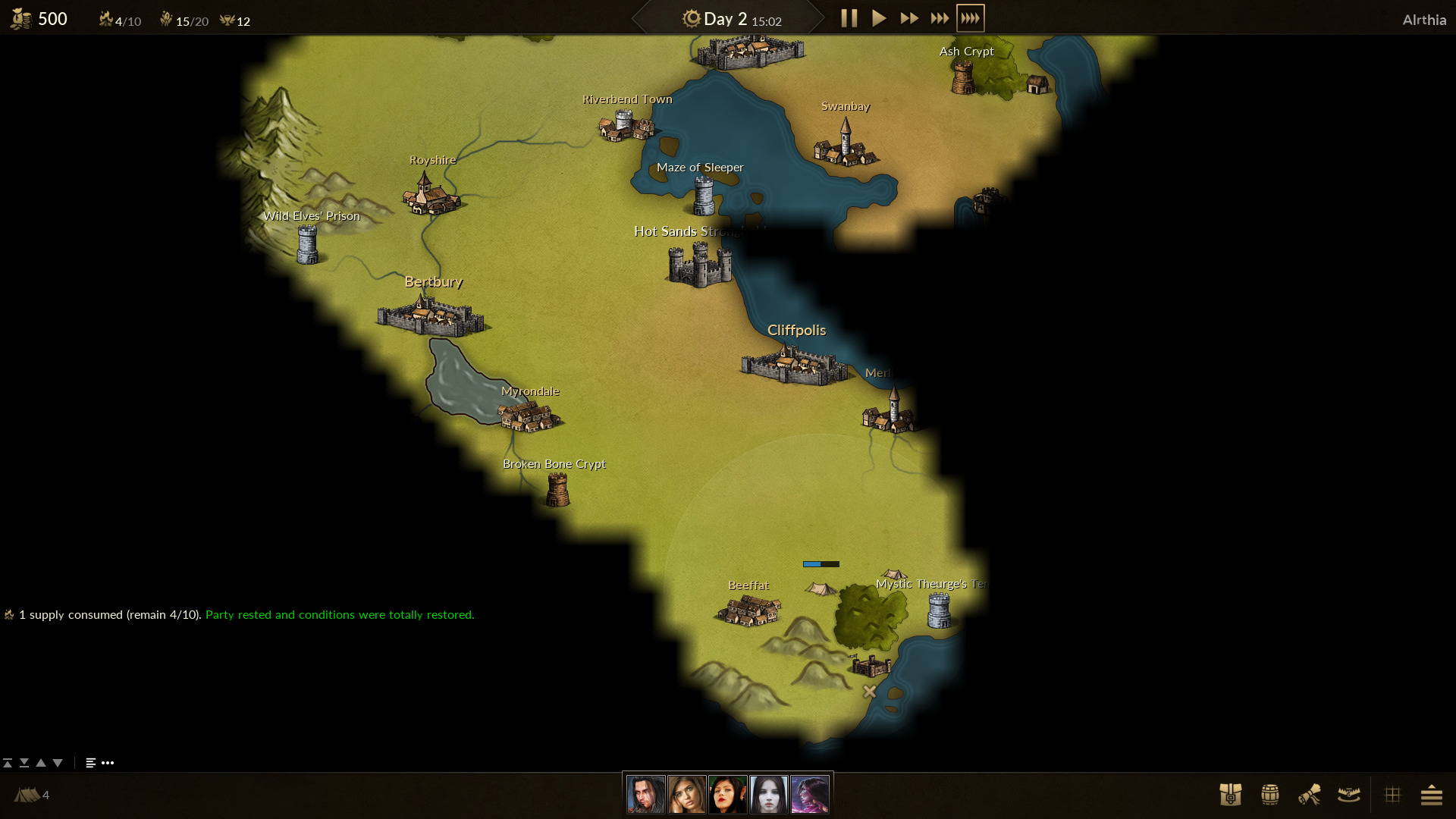 In the case of sufficient supply, your adventure party can take a rest at any time of the day to restore damage caused by combat and exploration. If there is no rest for a day, your party will automatically consume a supply and take a rest at the end of the day.