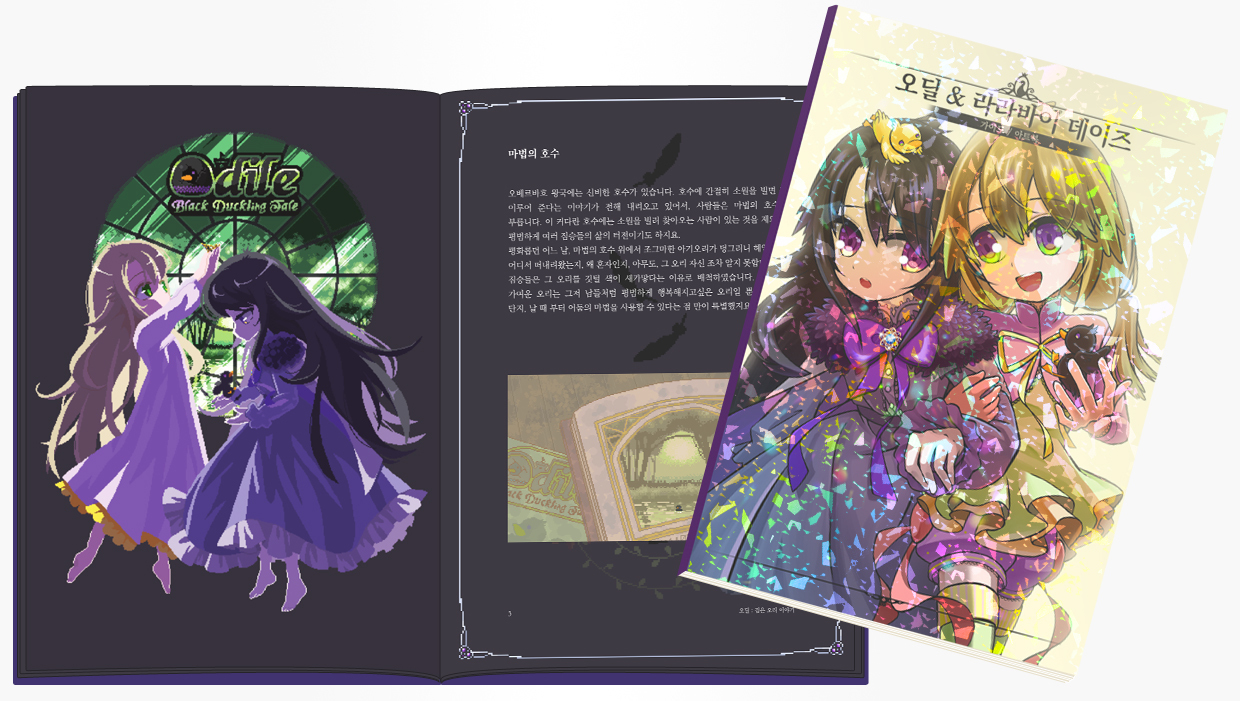 Currently, the crowdfunding for [Odile: The Black Duckling Tale], a prequel to [Lullaby Days], which is being developed by Sunplo Labs and Solutena Studio, is in progress. Among the funding rewards, Art & Guidebook includes strategies, artwork, etc. for Lullaby Days. The volume is at least 60 pages, and Odile has a high proportion of art, while Lara Day has a high proportion of guidebook. Digital art & guidebooks will be sold as DLC in the future, but there are no plans to produce physical art & guidebooks other than Tumblbug rewards.