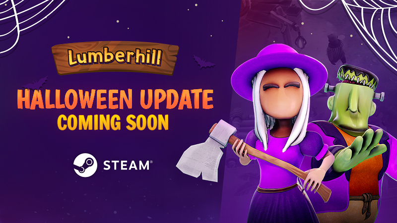 While you're sharpening your axe, keep your eyes peeled for a scary cute, new Halloween lumberjack skin update coming on October 28—dress up as Frankenpine and Flair Witch!